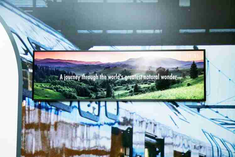 德铁导入达擎 TARTAN 28.6寸面板,,,,着眼 TARTAN 与众不同的尺寸比例,,,,能为车厢带来更大的使用效益、、、、更出色的观赏体验与更多的设计弹性。。。。(图片来源:德国铁路公司)