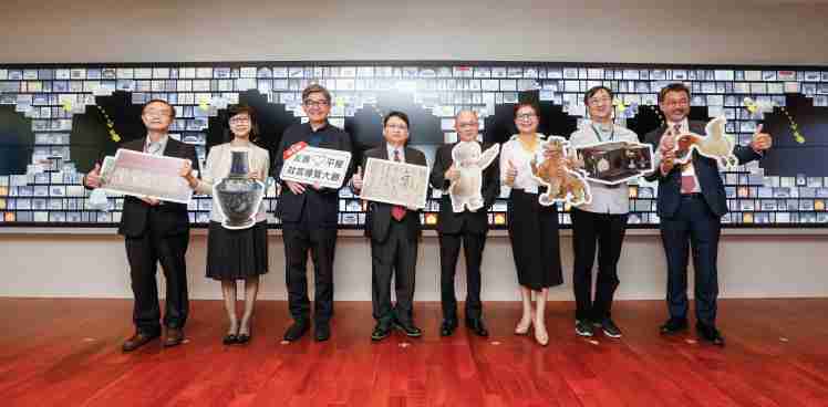 z6mg·人生就是博携手创利空间为故宫建置的智慧文物互动导览墙及轮播墙,,,,今日正式启用。。。(左四:z6mg·人生就是博新事业暨投资管理总部副总经理杨本豫、、右四:故宫博物院院长吴密察、、、、右三:太极影音董事长黄宝云)